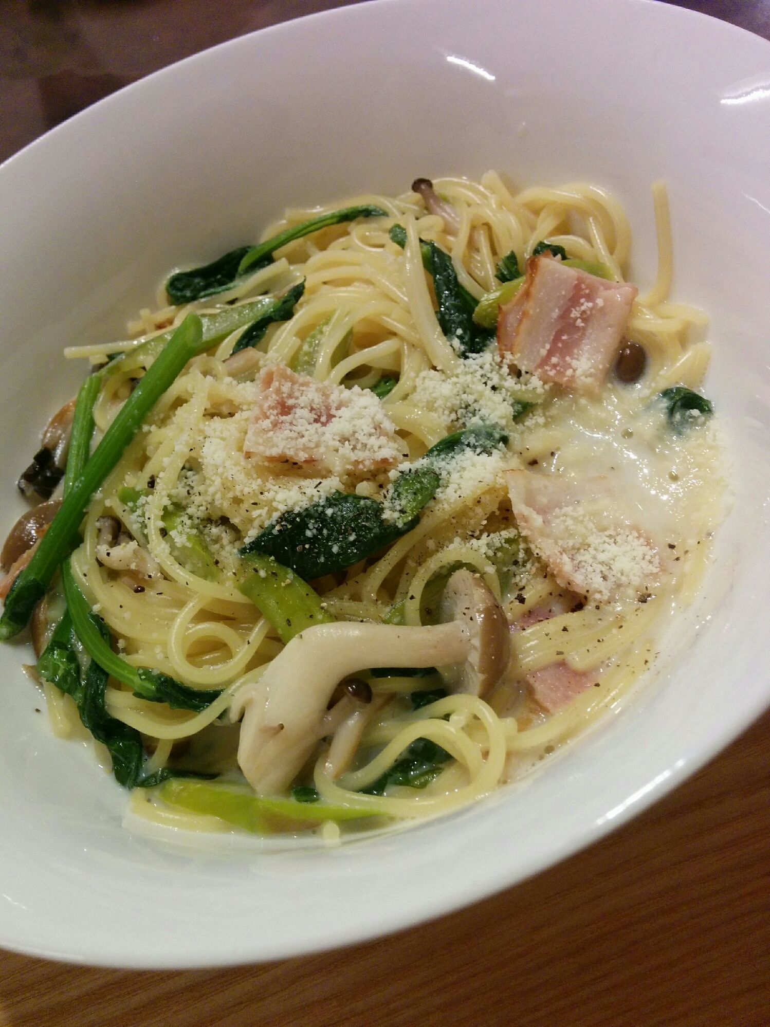 たっぷりほうれん草としめじのクリームスパゲティ 作り方 レシピ クラシル