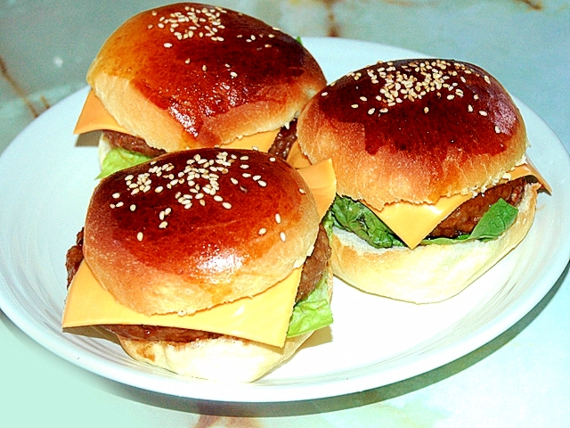 Hbで作るバンズ 大き目の照り焼きチーズバーガー レシピ 作り方 By Torezu 楽天レシピ
