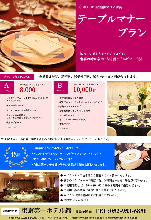 テーブルマナープラン 東京第一ホテル錦 名古屋市 阪急阪神第一ホテルグループ