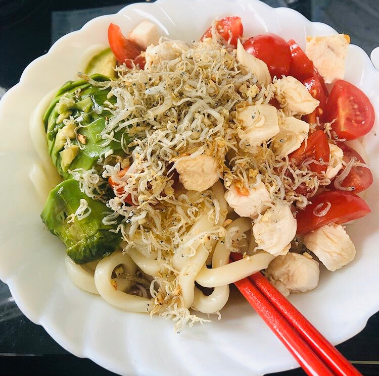 さっぱり 栄養モリモリ 豚しゃぶサラダうどん カフェks カフェクス 朝ごはん 時短料理 スコーン お弁当 料理 お菓子 幼児食 育児 日記