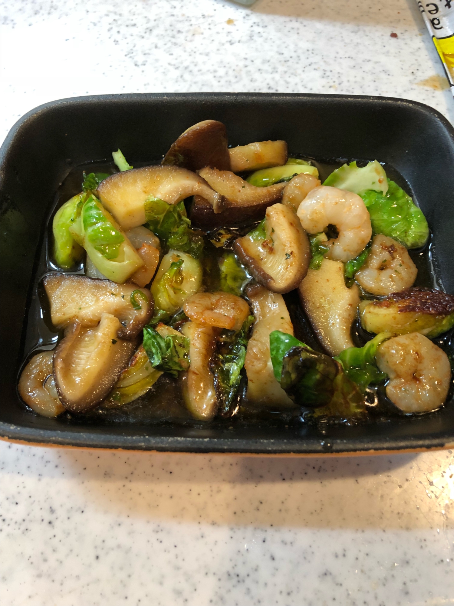 芽キャベツとエビのアヒージョ レシピ 作り方 By うーたま 楽天レシピ