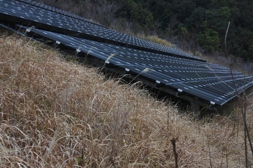25度の急斜面に建設した 空港メガソーラー 探訪 メガソーラービジネス 日経bp